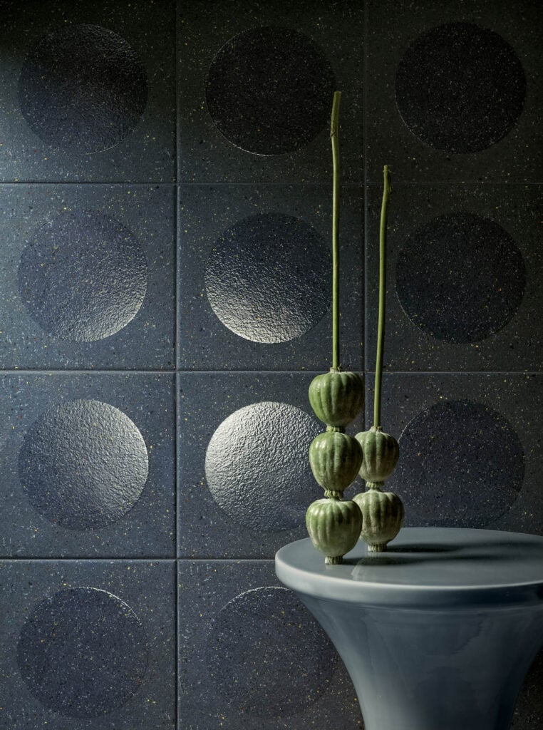 Forever Color Bubble Blue dari CIR Ceramiche memadukan hasil akhir matte dan gloss dengan efek mod.